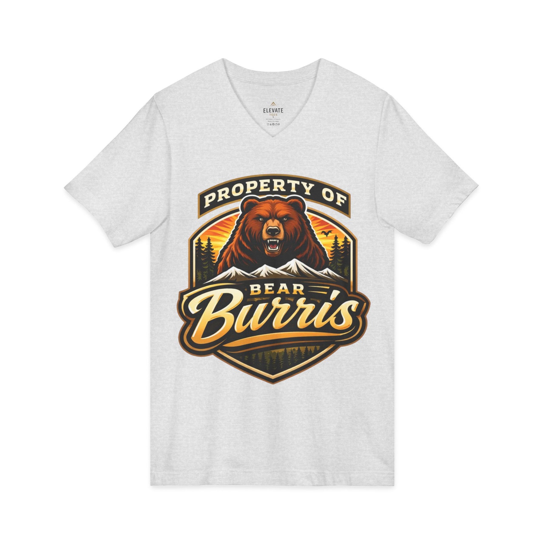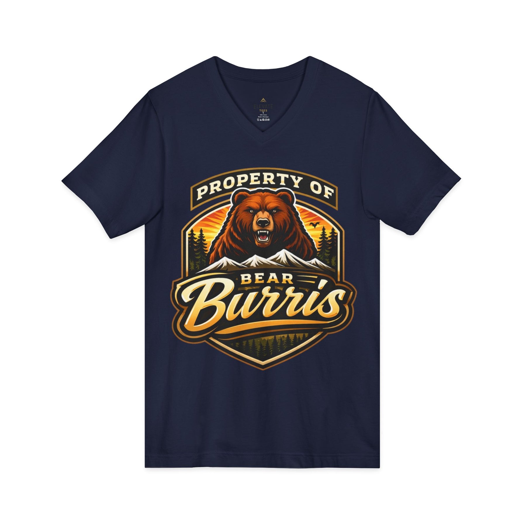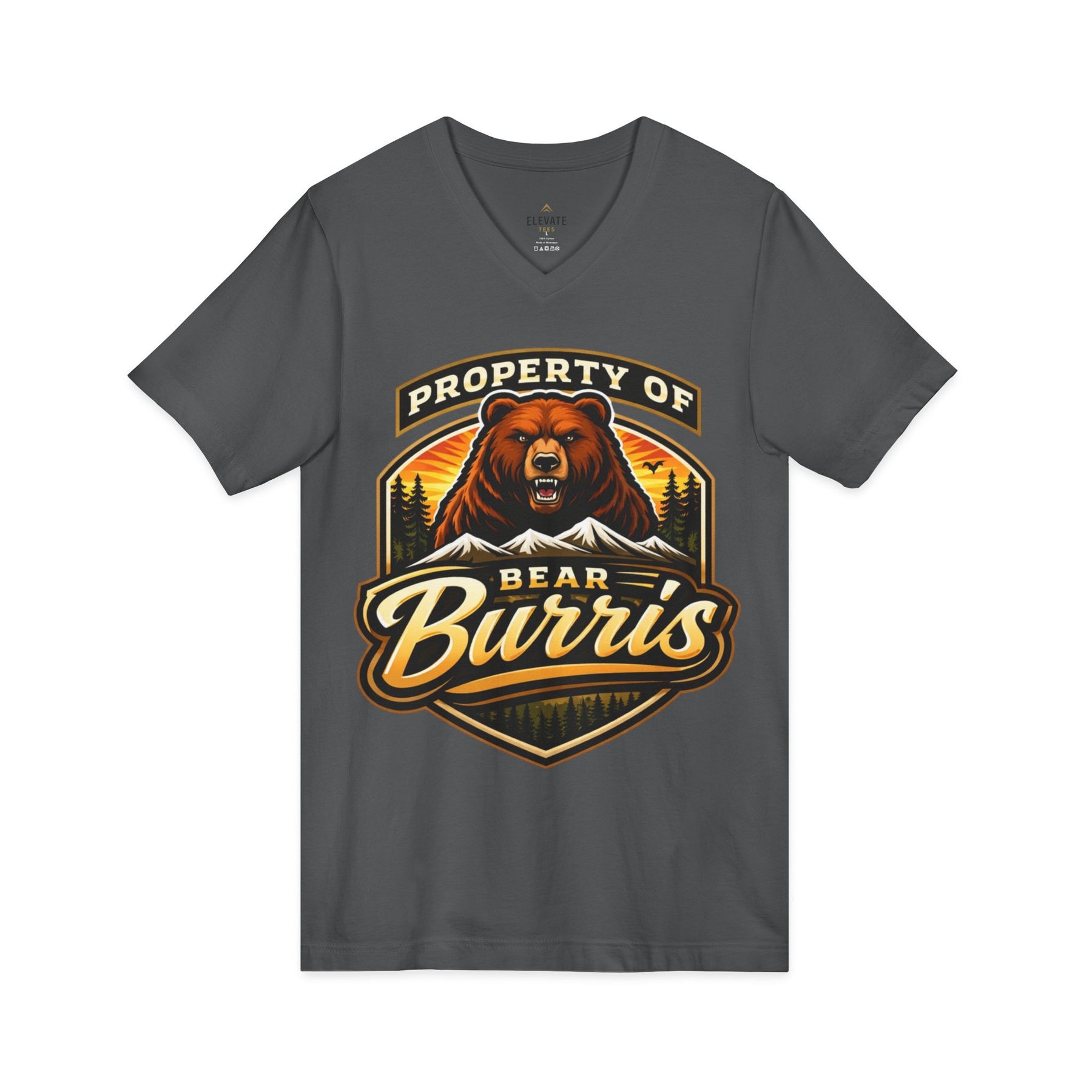 Property of Bear Burris V‑Neck T‑Shirt — Vintage Wilderness Bear Graphic Tee
