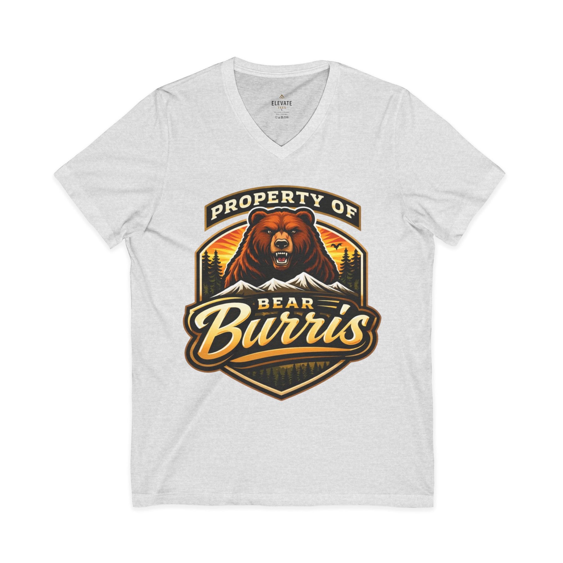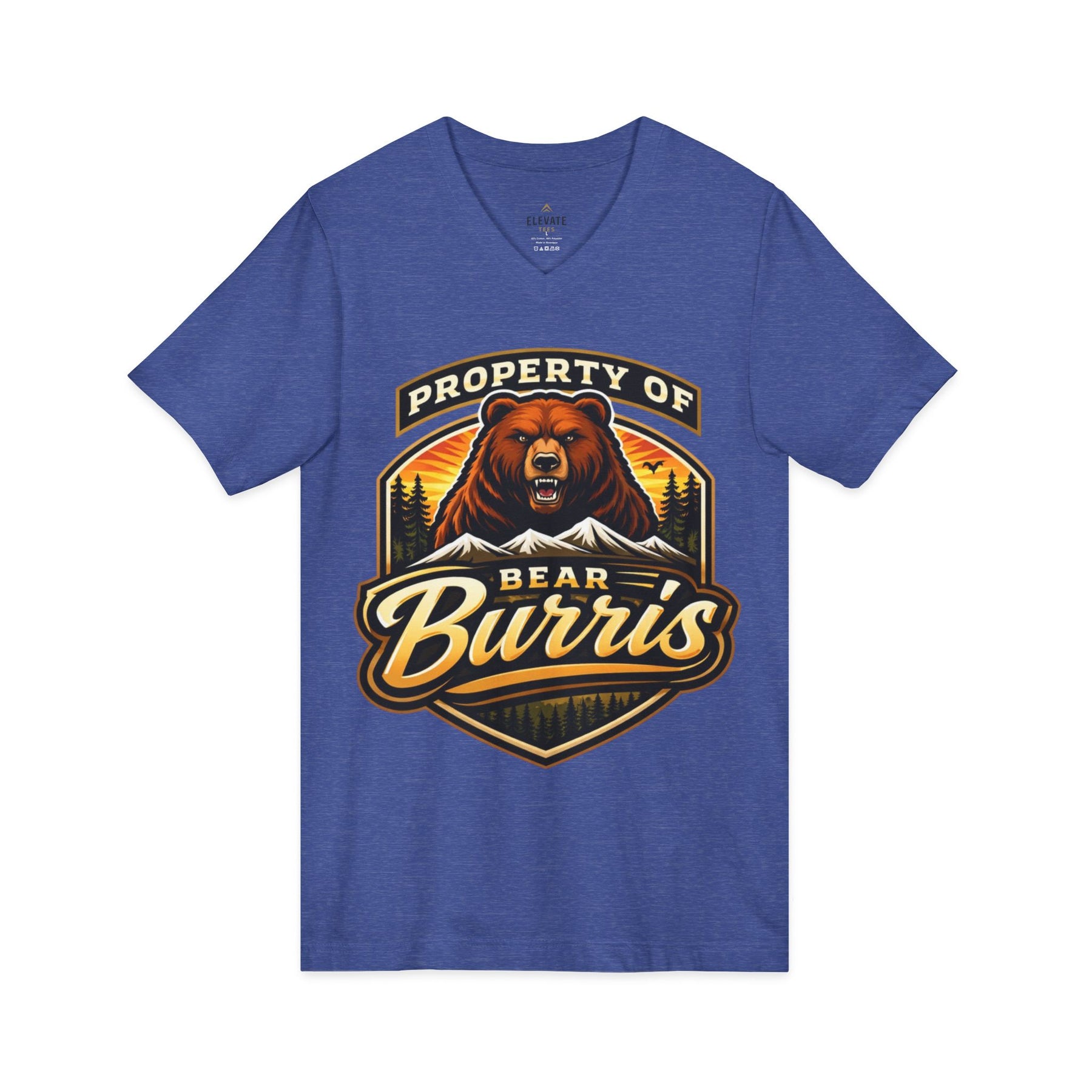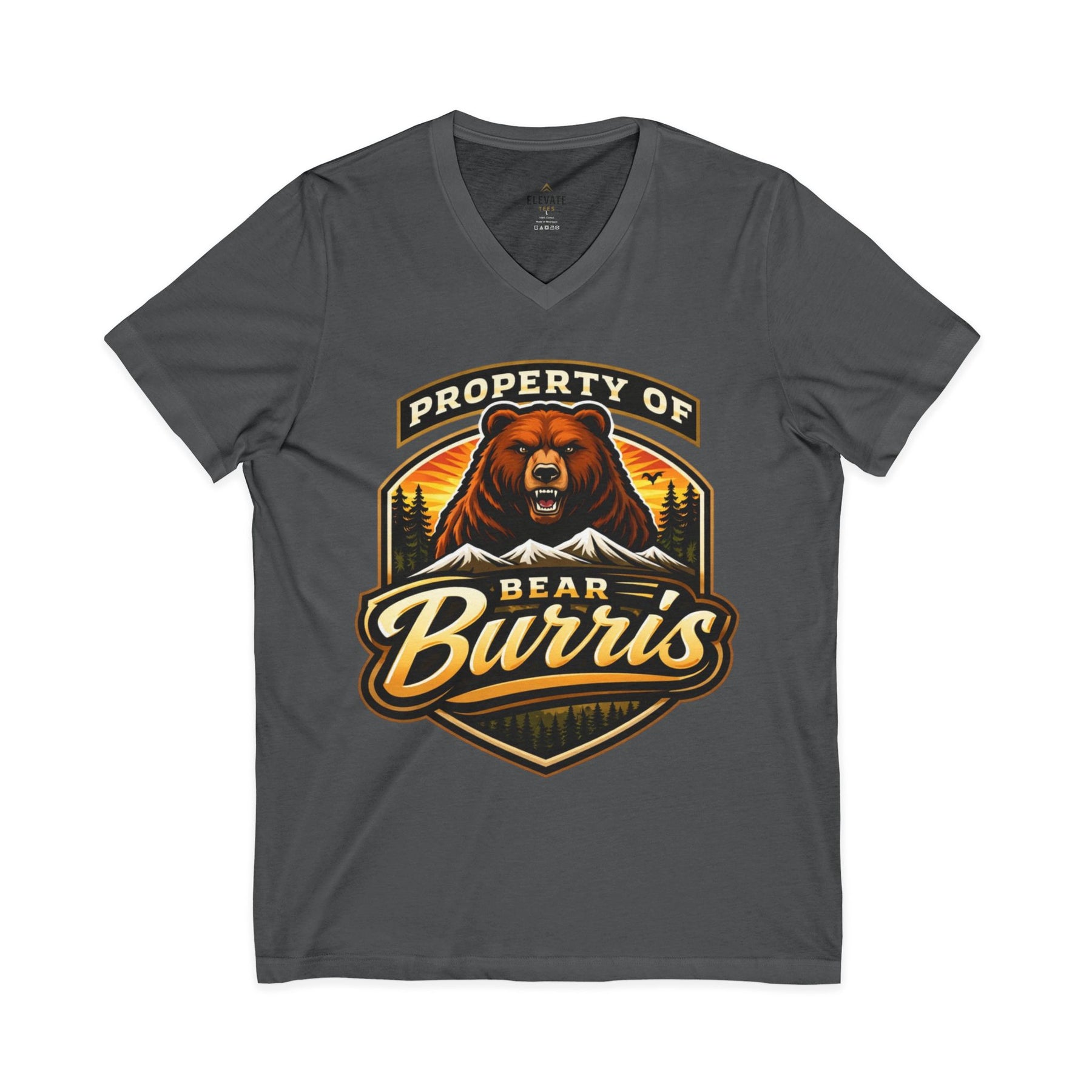 Property of Bear Burris V‑Neck T‑Shirt — Vintage Wilderness Bear Graphic Tee